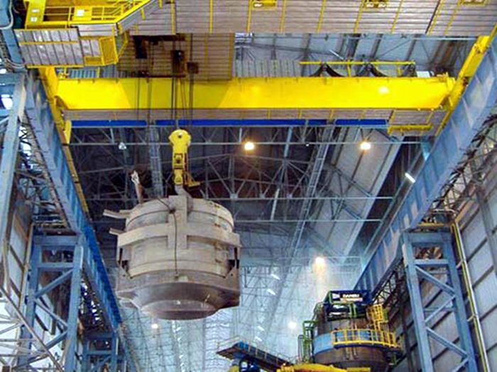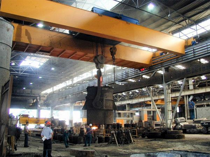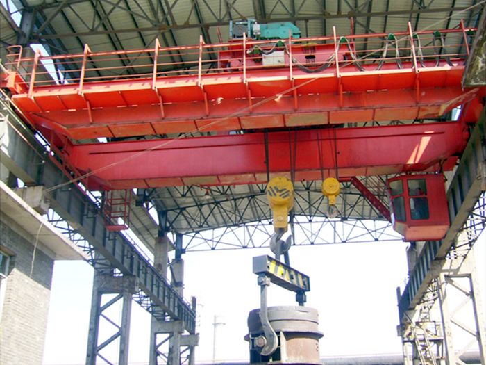 Le pont roulant de fonderie QDY avec crochet est principalement utilisé à l'endroit où le métal en fusion est soulevé. Classe de travail élevée A7, le revêtement de protection thermique se trouve au bas de la poutre principale,
